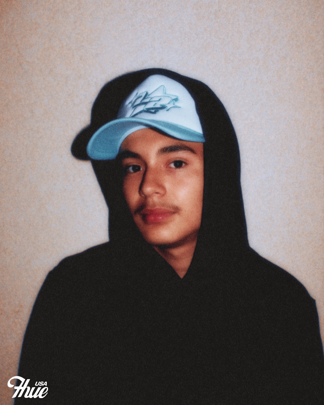The Cotton Candy LA Trucker features an embroidered LA Quasar logo on the front panels with an fhue "f stencil" logo on the left. Additional details include an fhueUSA heart patch on the right-wear side. Snapback. One size fits most.