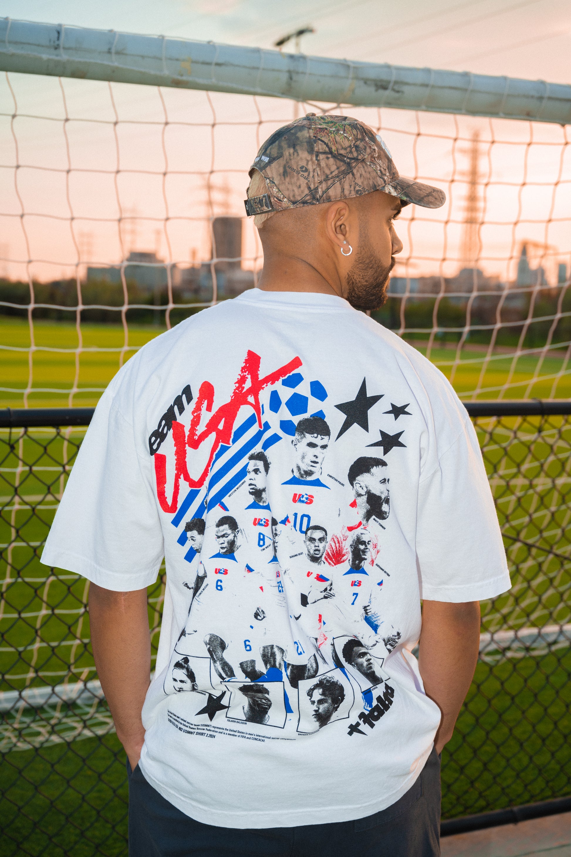 The USMNT T is meticulously designed with a high-ribbed collar that provides a snug, comfortable fit that will not stretch out or lose its shape over time. Cut with a spacious fit in the sleeves and torso, making it relaxed and versatile enough to wear with anything.